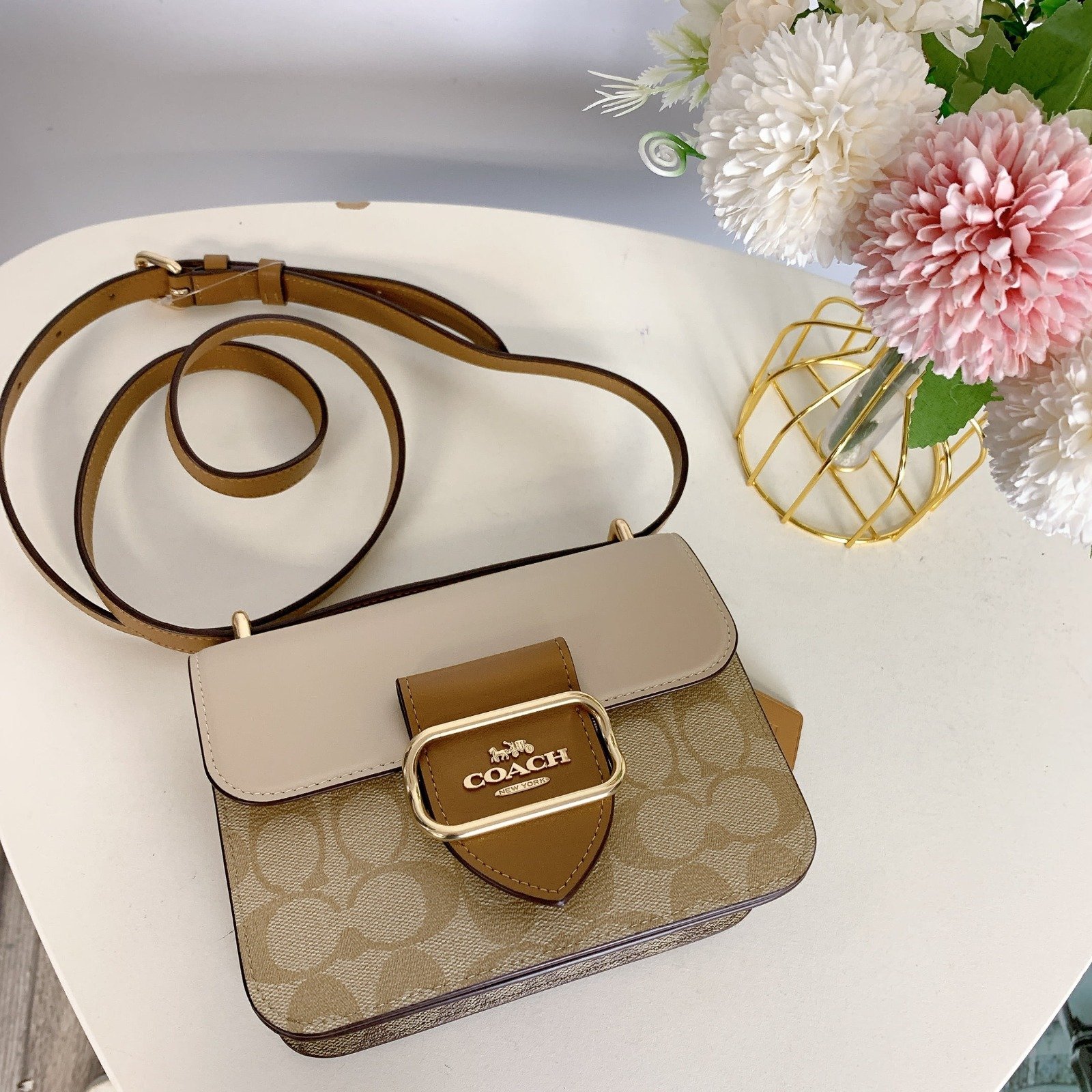 حقيبة كتف كوتش Coach للنساء لون بيج.