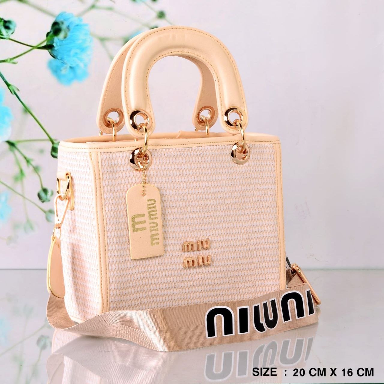 حقيبة كروس من MIUMIU للنساء لون بيج*أبيض