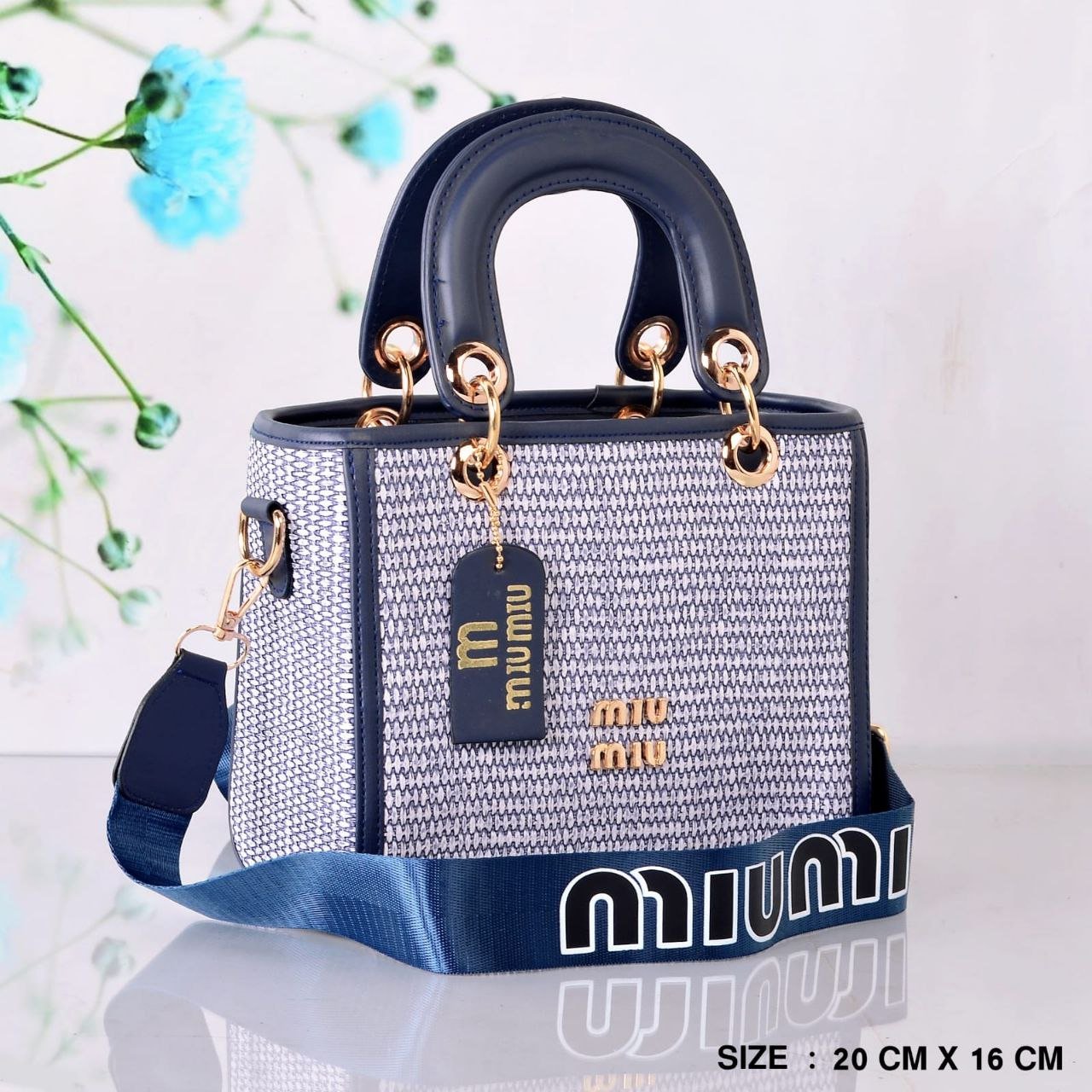 حقيبة كروس من MIUMIU للنساء لون كحلي*أبيض