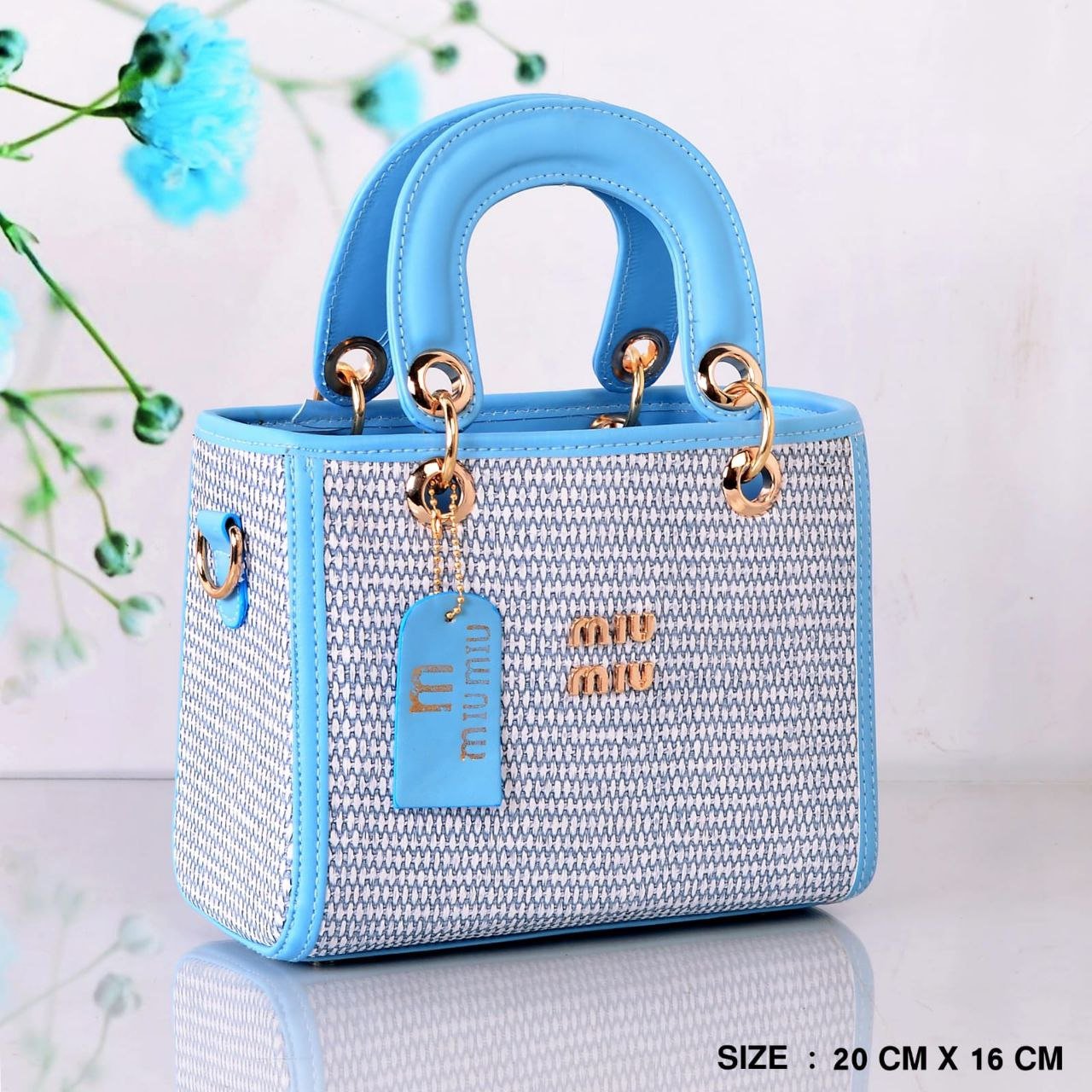 حقيبة كروس من MIUMIU للنساء لون بيبي بلو*أبيض