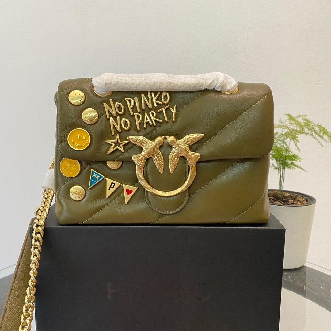 حقيبة كتف بينكو Pinko للنساء لون أخضر زيتوني.