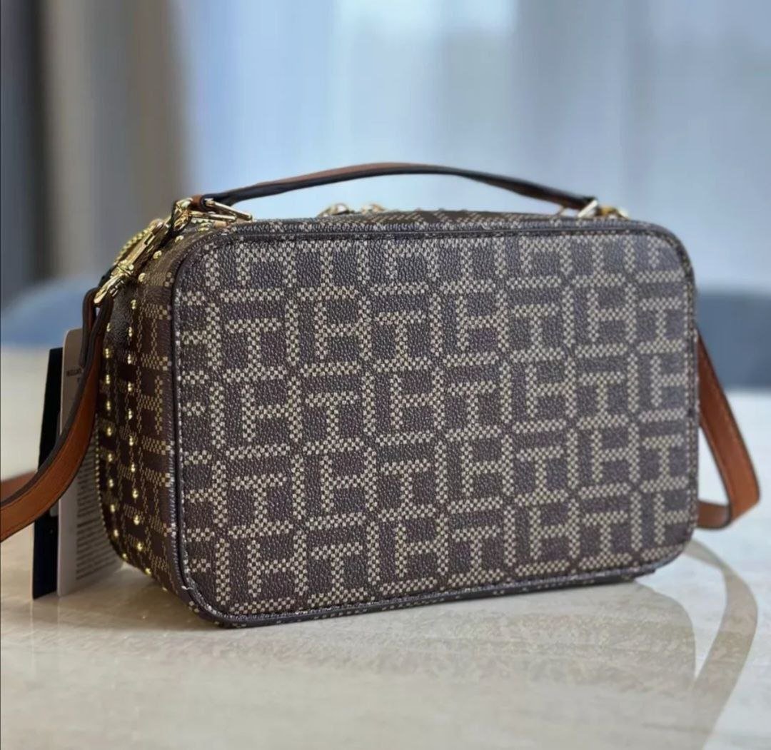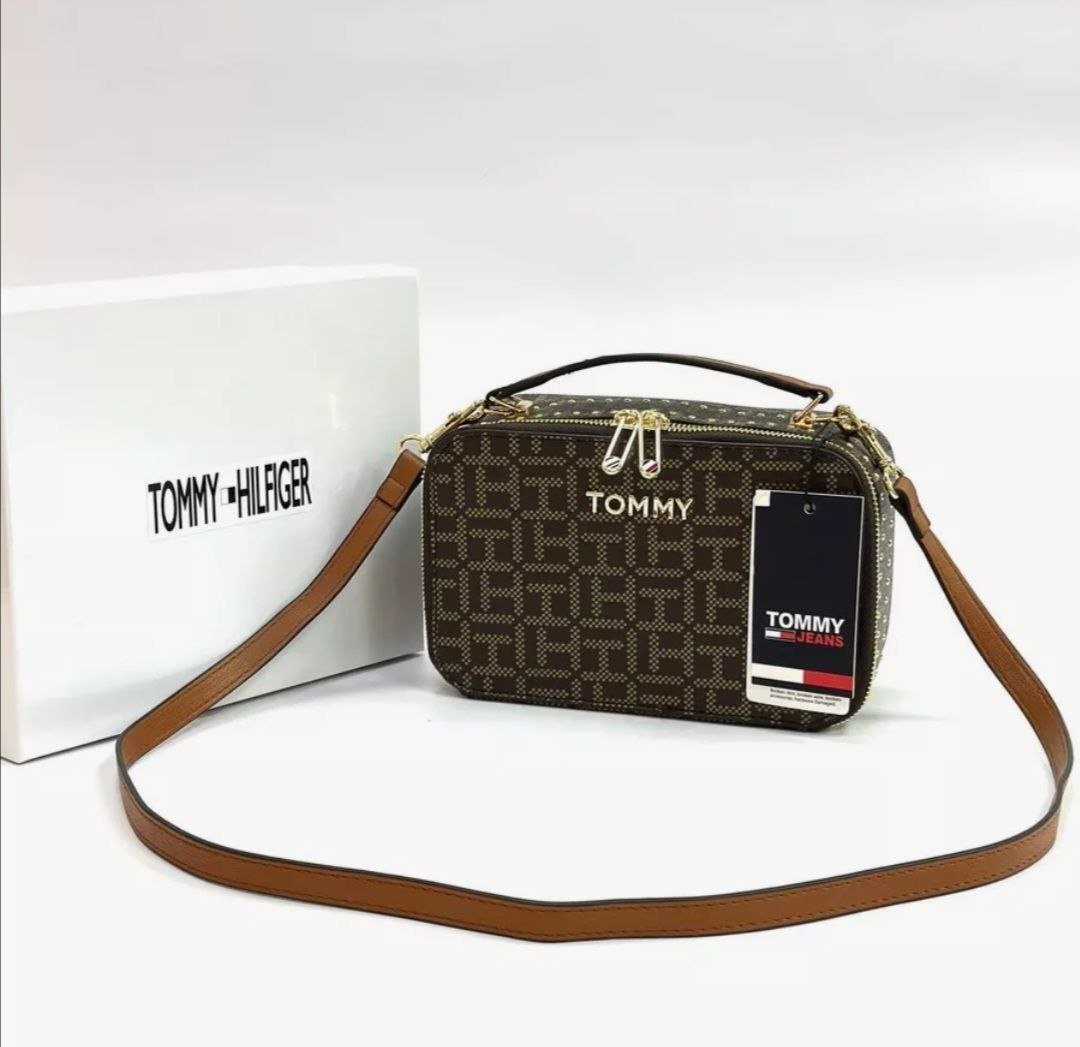 حقيبة كتف تومى هيلفيغر Tommy Hilfiger للنساء لون بني.